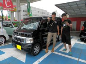 担当より:T様、この度はエブリィWスポーツを御成約頂きまして、誠に有難うございます。奥様の格好イイジムニーと一緒にまた遊びにいらして下さいネ!これからも宜しくお願い致します!