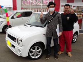担当より:N様、この度はアルトラパンをご成約頂き、有り難う御座いました。メンテナンスパック・任意保険にご加入頂いておりますので、何か御座いましたらご連絡下さい!これからも宜しくお願いいたします!