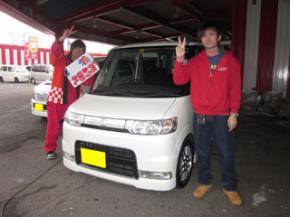 担当より:この度はお買い上げ誠にありがとうございました。これからお仕事で地方に赴任されるようですが、こちらにお帰りの際にはお立ち寄りください。また、保険もご加入頂きましてありがとうございました。ムーヴはキビキビ走りますので、これからのカーライフのお供としてお役立てください。ありがとうございました。
