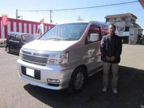 担当より:この度はエルグランドのご購入誠にありがとうございました。安くて人がたくさん乗れるミニバンを探されていて格安でピッタリな車輛をおススメさせて頂きました。また何かありましたらお気軽にご連絡下さい。これからも宜しくお願いいたします。