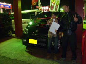 担当より:この度はケイ・ドリームでのお買上げありがとうございました!!初めてのお車で不安もおありでしょうが精一杯サポートさせて頂きますので、末永くかわいがって下さいね!!これからもよろしくお願い致します。